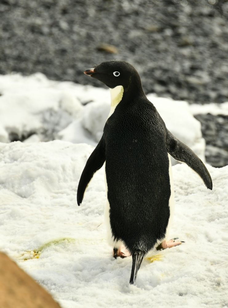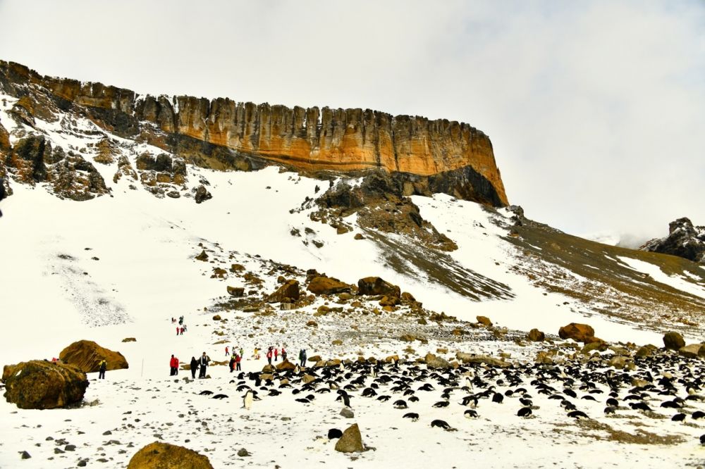 布朗海崖在温德尔海的北岸,是个阿德利企鹅与金图企鹅混居的地方。我们登陆时,看到企鹅高速公路上行走的多是阿德利企鹅,一队队的,长的不见首尾,算是它们鹅口密度之高的一个佐证吧。