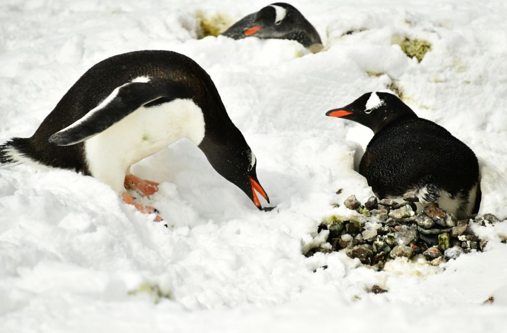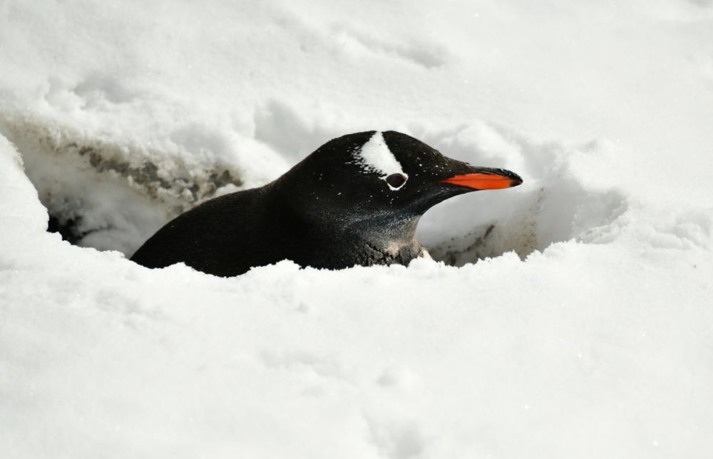 在布朗断崖登陆的前一天,下了一场春季的大雪,许多正孵蛋的金图企鹅都在雪坑中坚守岗位。这个时刻,窝垒的越高,优势就越明显。