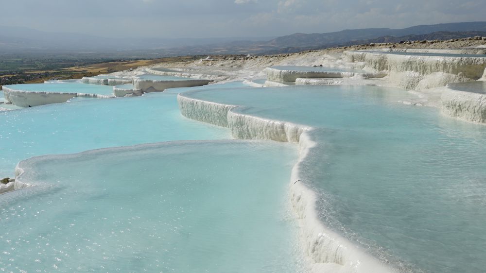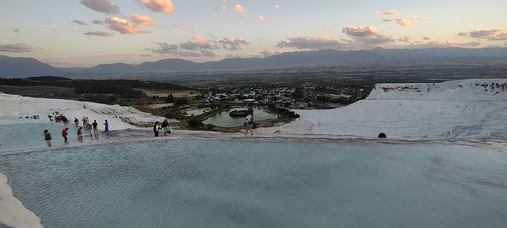 虽然网上有各路网红或广告晒出迷人的棉花堡照片,到了现场也许会非常失望。我第一眼看到的棉花堡着实让我怀疑是否值得来此地一趟,直到不经意中忽然撞见了完美的景色。那里只有三三两两的几个游客,大家互相对视着,好像都有点不相信自己的运气一般,还把说话声也放低了,似乎大声说话会使美景骤然消失。