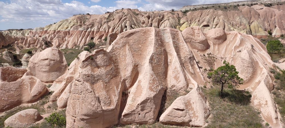 Cappadocia 位于土耳其中部的高原山区,以其特有的喀斯特地貌吸引着游客,据报道,仅2023年,就有创纪录的四百八十二万游客到此一游。那里有迷宫般的地下城,还有许多深藏在奇石怪岩中的石窟教堂和壁画。上千年的历史不在此地赘述了。