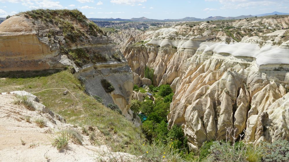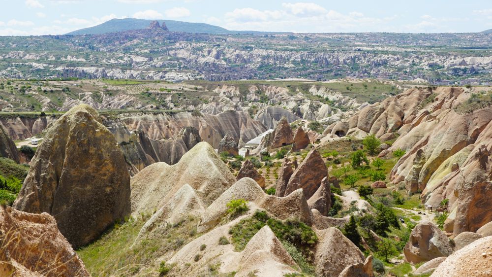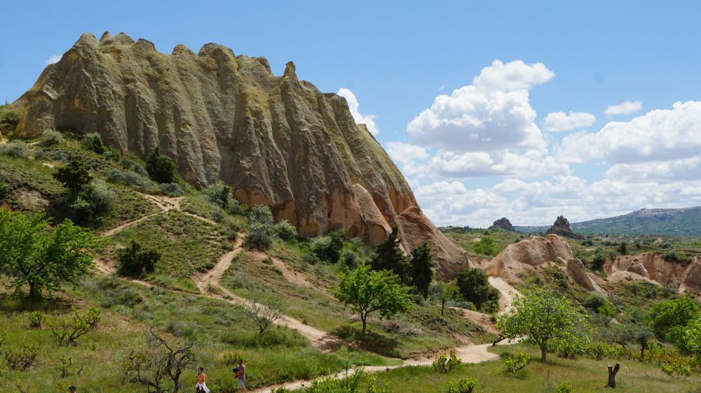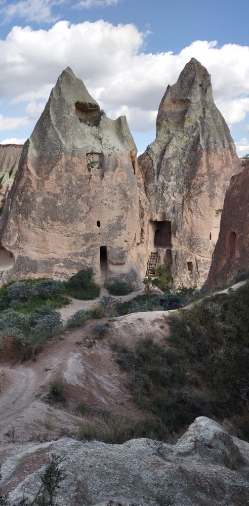 我计划在此地逗留4天,早早地就订好了一家洞穴旅馆 (Cave Hotel)。忽然女儿女婿改变了他们去克罗地亚的计划,也要来土耳其。年轻人假期有限,他们先去了伊斯坦布尔和棉花堡,然后和我在Cappadocia 会合,我们住在同一个洞穴旅馆,楼上楼下做起了邻居。他们已经租好了车,我放弃了我原有的计划,省心地跟着他们玩吧。年轻人来这里是一定要徒步的,他们研究好了路线,有备而来,我努力做到不拖后腿,积极配合。