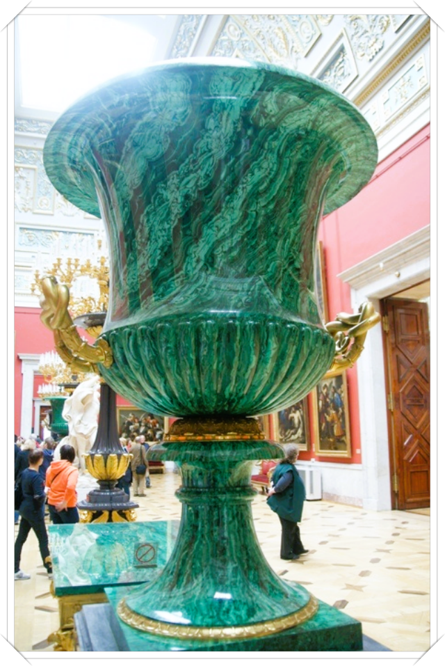 冬宫是世界四大博物馆之一。收藏有世界各国的艺术品,油画、雕像、地毯、家具、工艺品等一应俱全,内有400个展厅和陈列室,其中古希腊的瓶绘艺术、古罗马的雕刻艺术和西欧艺术三部分藏品在世界收藏界享誉盛名。油画则包括14-20世纪700年的跨度,其中达·芬奇、毕加索、拉斐尔等的作品均有收藏。世界留传至今的达芬奇的油画总计不过十幅,《戴花的圣母》和《圣母丽达》就陈列在这里。拉斐尔的《科涅斯塔比勒圣母》和《圣家族》、米开朗基罗的雕塑品《蜷缩成一团的小男孩》,都是该馆的珍品。此外还有丢勒、贝尼尼、伦勃朗、门采尔、莫奈、毕加索等世界大师的艺术作品。还有俄罗斯国宝级的画家列宾,苏里柯夫,契柯夫,希师金等的画,以及木乃伊和很多古国的文物。若要仔细欣赏,恐怕得花几年时间,我们只有一天,走马观花是注定的。