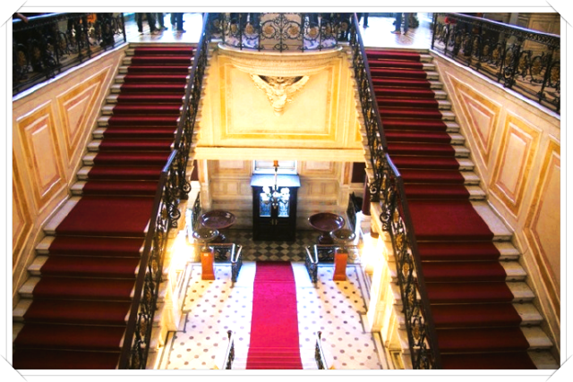 圣乔治大厅/大金銮厅四周排列着专门从意大利运来的白色大理石柱,赋予大厅非同寻常的庄严感。俄国历史上的常胜将军乔治的大理石浮雕庇护着下方的御座。在皇帝御座背后,有用4.5万颗宝石镶嵌成的一幅地图,不过我们不能上去观看。冬宫的心脏圣乔治大厅/大金銮厅,它建于1795年,面积800平方米。起先是巴洛克风格,但被叶卡捷琳娜二世改建成严谨的古典主义形式。天花板上装饰着富丽堂皇的镀金图案,地板则由16种颜色的珍稀木材镶拼而成,和天花板具有同样的花纹。这座气势恢弘的大厅是沙俄皇室处理要事的主要场所。