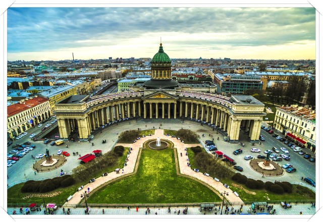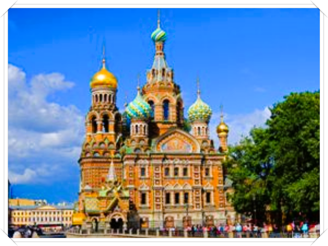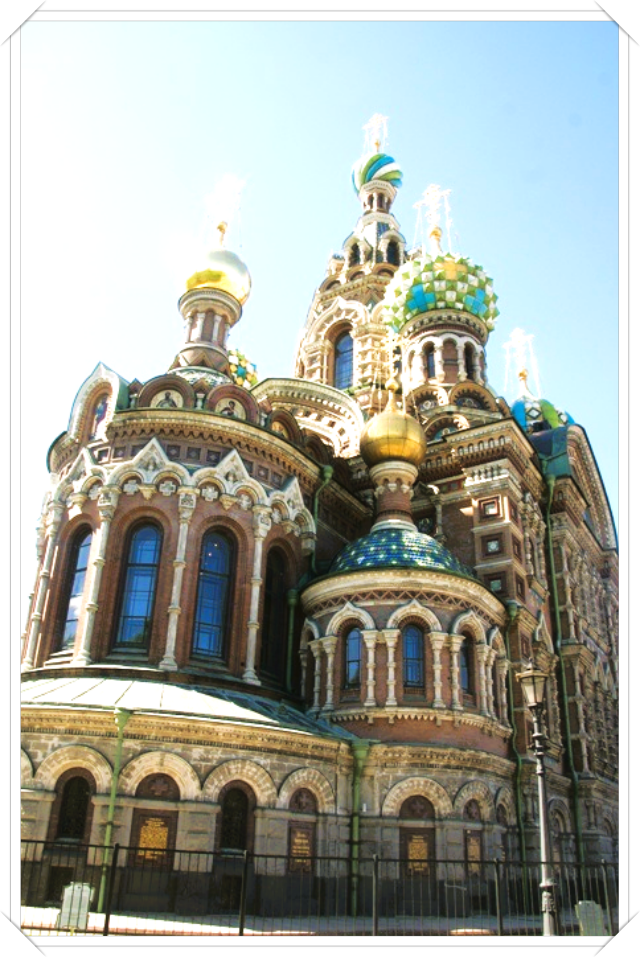 滴血大教堂(Спас на Крови)也被称为复活教堂,滴血教堂建造于1883年至1907年, 是圣彼得堡地区少有的纯俄罗斯风格建筑,1881年3月1日亚历山大二世皇帝在此遇刺身亡,所以教堂命名为滴血教堂。 滴血大教堂轮廓美丽,装饰花花绿绿,镶嵌有复杂、颜色艳丽的影像图案,用丰富的彩色图案瓷砖、搪瓷青铜板装饰,教堂顶部还立着五光十色的洋葱头顶。与古老俄罗斯风格与附近的古典式的建筑物成鲜明对比,反映了俄国十六和十七世纪的典型的东正教教堂建筑风格。