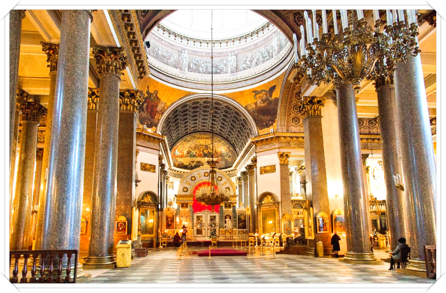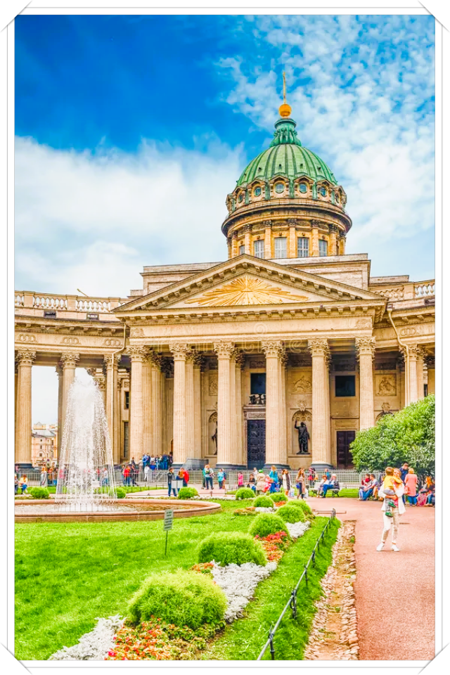 导游带我们参观了滴血教堂和喀山大教堂,这两个教堂坐落在彼得堡知名街道——涅瓦街上,有着不同的建筑风格。