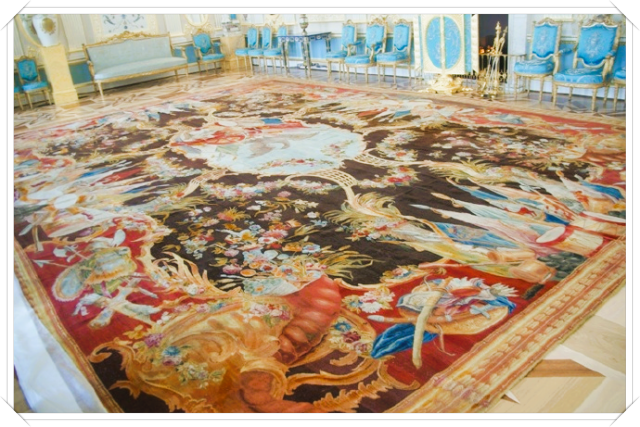 请各位留意紫薇脚上套的鞋子,每个参观者都要求这样的,为的是保护昂贵的拼花地板