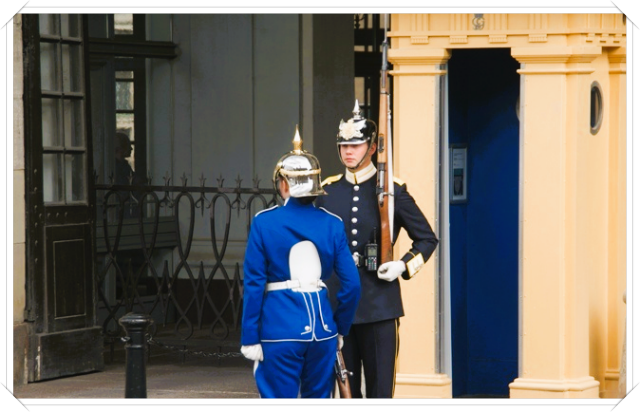 让游人开眼界的是夏季每日中午在王宫前举行的卫队换岗仪式。换岗卫兵身着华丽服饰严肃而庄严地履行着古老传统的换岗程式。