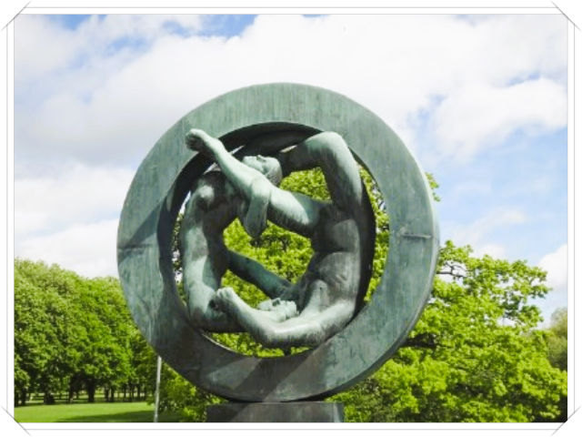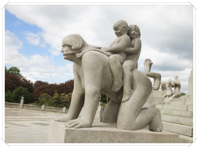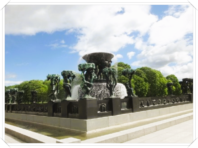 奥斯陆著名的公园——维格兰雕塑公园。这里陈列着挪威著名雕刻家古斯塔夫·维格兰的150组雕塑,它们形态各异,变化多姿,充满了生活情趣,把欧洲的古老传统、现代艺术和挪威民族的风格融为一体,显示了艺术家的造诣和功力。