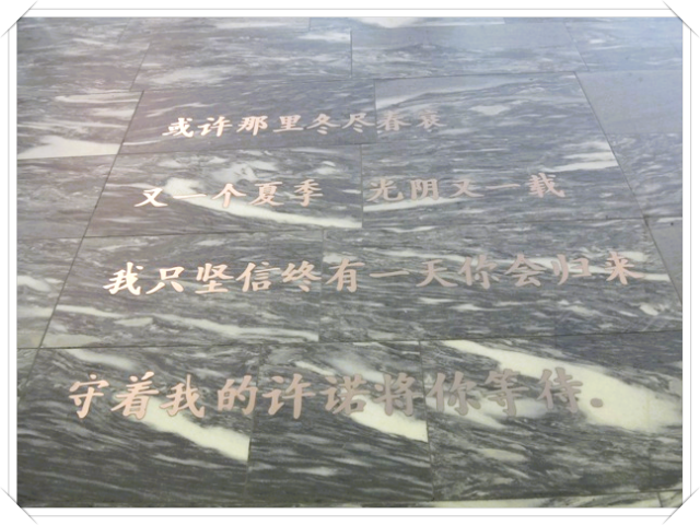 登机前在候机大厅低头的一瞬间,看到了地上刻着的中文字,徒增了许多留恋与不舍