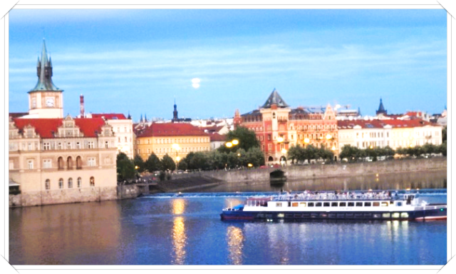 我们晚上7:30再次出去逛,沿着河边往左一直走,边走边拍照,到第三座桥,过桥,慢慢走回来,从查理大桥返回旅馆,一路的夜景十分迷人。