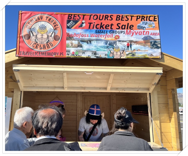 6:30自助早餐。9点靠岸,下游轮。不远处的广场有10来个当地旅游部门的小房子,去看了每家公司的旅游项目和价格,最后选定MEMORYTRAVEL ICELAND旅游公司,他们有2个多小时,75欧元,去众神瀑布、一个风景点和植物园。