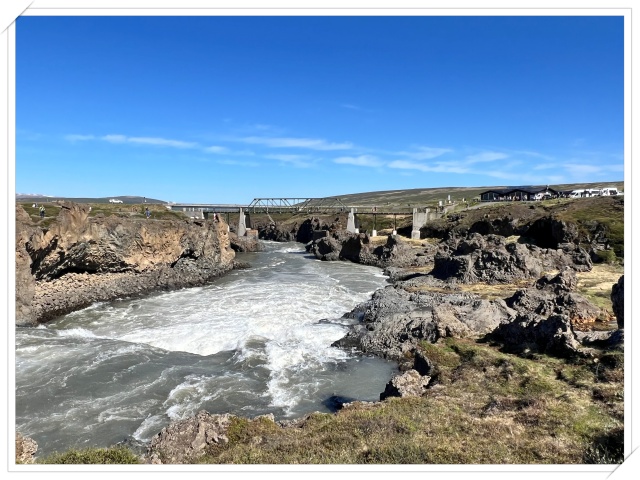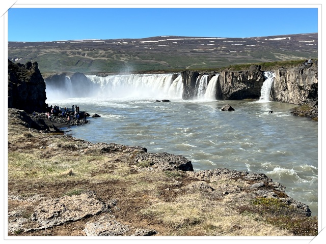众神瀑布感觉与美加之间的尼亚拉加瀑布有点像,气势磅礴,看到了瀑布上美丽的彩虹。我们感受着众神瀑布(Godafoss)的轰鸣,奔腾的河水从宽阔的马蹄形悬崖倾泻而下。