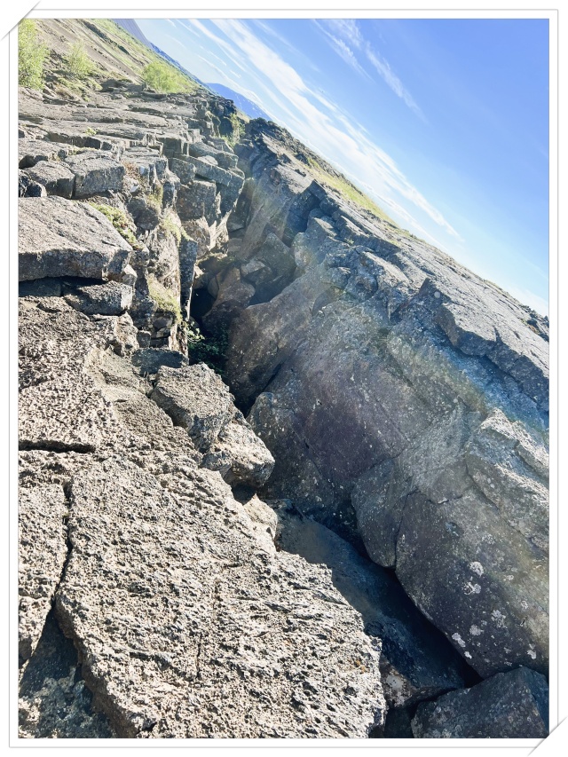北美板块和亚欧板块各自往相反的方向漂移,中间就留下很长很宽的大地裂口。