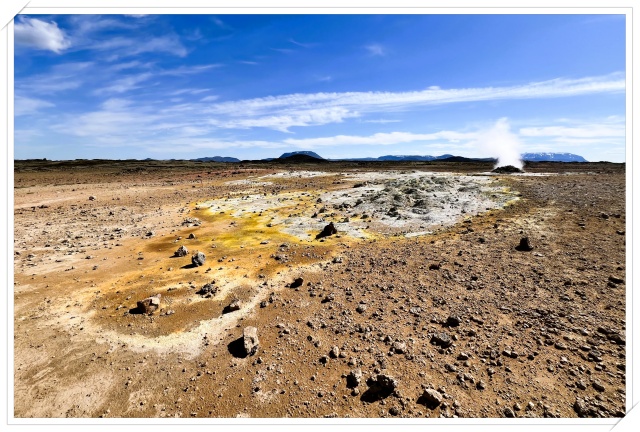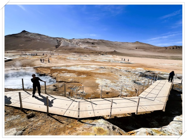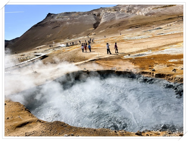 泥浆温泉水温超过100摄氏度,冒出的烟有浓浓的硫磺味,与黄石公园的有点像,我戴上了口罩。
