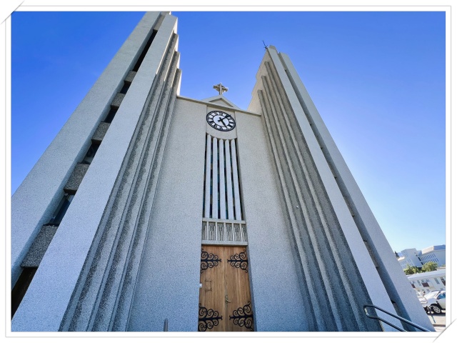 自己去了阿克雷里教堂,上100多级台阶,教堂没有开门,在外面拍照。阿克雷里教堂为城市地标,由著名建筑师Guðjón Samúelsson设计,位于山丘上,可俯瞰全城和峡湾,内部彩绘玻璃精美。