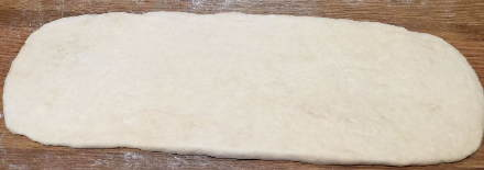 2、第二天早晨取出,案板上撒少许面粉,不需要再揉面,将柔软又有延展性的面团拉长,擀成5毫米厚的面片,再切成2厘米宽的条,