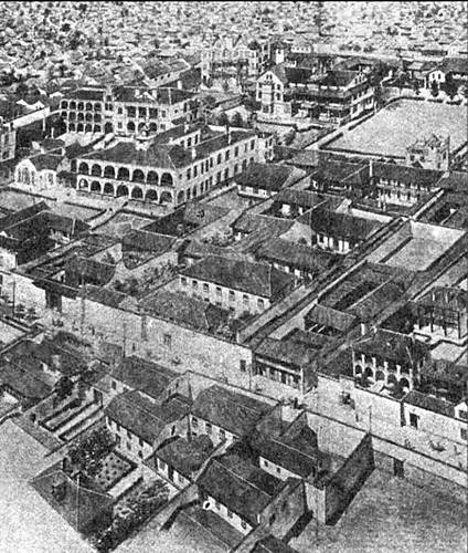广济医院在1884年建成,大门口棚架悬吊着紫藤花簇,左侧是大草坪,右侧玫瑰花坛,医院有了候诊,门诊,手术室,药房,办公楼等分类。