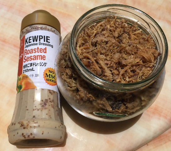 正好家里有这款日本的芝麻沙拉酱,就用上了。大家可以根据自己的口味,使用不同品种的沙拉酱。