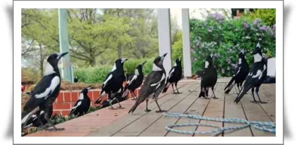 澳洲的喜鹊并非全然黑色,黑白分明的羽毛在阳光下熠熠生辉。它们身姿挺拔,常栖立在草地、电线或篱笆上,仿佛警觉的守卫。清晨时分,喜鹊的鸣声悠扬婉转,音色丰富,被誉为“会唱歌的鸟”,常用不同的声调彼此呼应,像是林间的合唱。它们聪明而机敏,能辨认人类的面孔,对熟悉的人亲近温和,对陌生或靠近巢区的人则会毫不犹豫地俯冲驱赶。以下为网图: