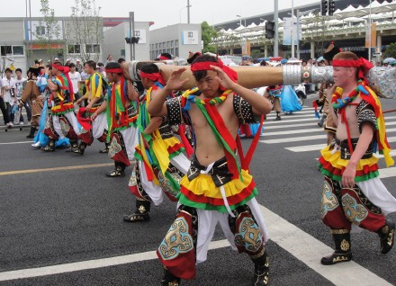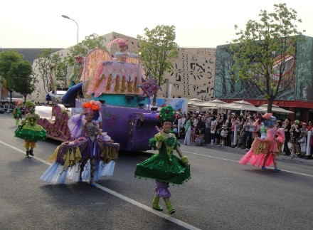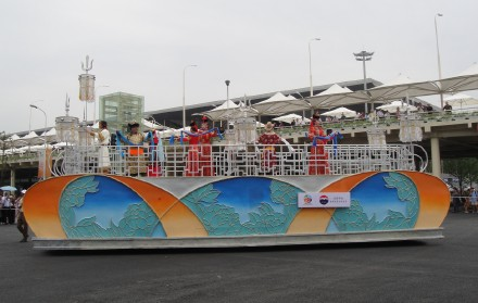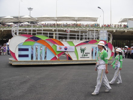 只有一天时间逛世博,我们的策略是:尽量不去排队,先只看外面,浦东ABC三个片区想看的场馆依次看,在外面拍照片,暂不进里面。我们走走停停,有时也根据需要乘世博园区内的车,那是免费的。我们有幸看到了两次风格不同的巡游,拍了不少照片。