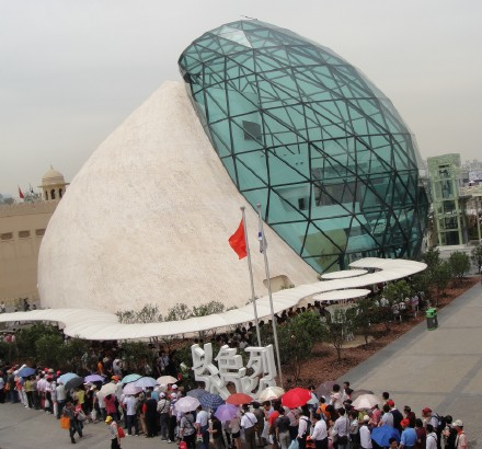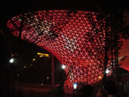 那天我们算是很幸运的,一天时间内看到的内容相当丰富。只在以色列馆排队半小时,其它都未排队。其实不少馆花时间排队进去,也只是看15分钟介绍他们国家的电影而已。晚上8:30出来,大家都很满意,因为这一天的时间利用得相当不错。那天33万人参观世博。