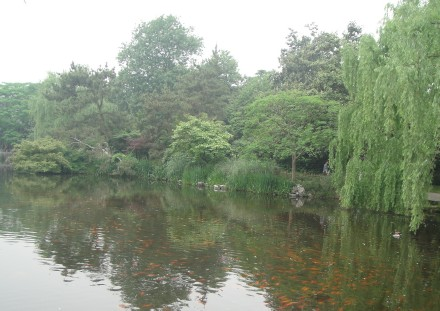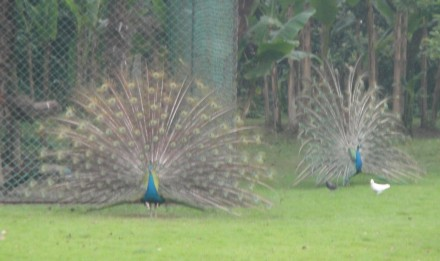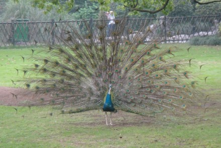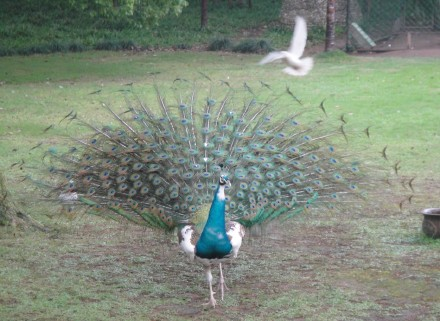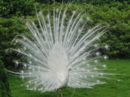 花港观鱼有个孔雀园,那里的孔雀特别喜欢开屏。它们像是在与西湖争艳:你有美丽的山水,我有艳丽的羽毛。你会淡妆浓抹,我会频频开屏。 你使游人流连忘返,我让游客驻足观望。诗情画意的西湖,有色彩缤纷的孔雀相伴,真是锦上添花相得益彰,吸引了众多游客前往观赏。