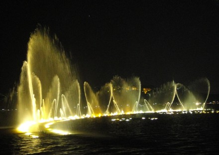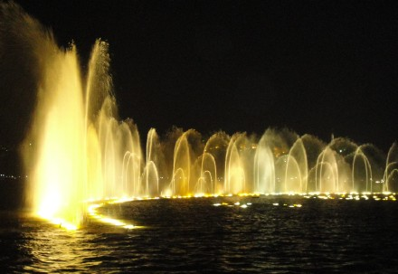 西湖音乐喷泉位于杭州西湖三公园,就在平海路口附近的西湖沿岸。地处杭州最繁华地段,作为中国最大的音乐喷泉之一,杭州西湖的音乐喷泉,吸引了不少国内外游客的目光。而白天的音乐喷泉与晚上的效果是不一样的。对我来说,更喜欢看晚上的音乐喷泉。因为搭配着夜晚的西湖灯光效果与周围美景,真是美不胜收!一般晚上音控师会选一些柔和的曲子来演绎水的唯美,伴随着音乐,我们仿佛看到了柔情似水的西子美女在水中翩翩起舞。《梁祝》《千年等一回》,用心去聆听,自己不知不觉就进入了祝英台与梁山伯,白娘子与许仙的传奇故事里面去了。虽然喷泉的舞蹈动作是人设计的,不管是节奏感强的还是舒缓的音乐,水似乎演绎得都比较到位,象是真的听得懂旋律一样。