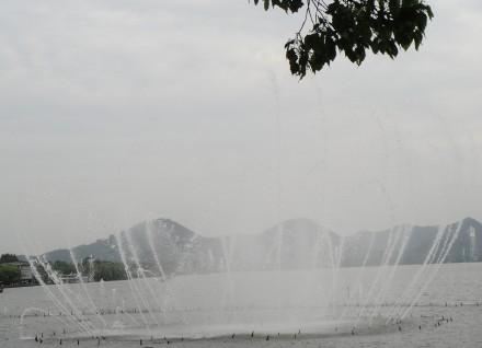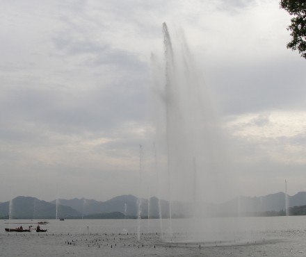 西湖音乐喷泉是2003年西湖综合保护工程时建的,有近400个喷头,其中224个能360度旋转,做出600多种水形变幻,最中间的那个大喷头,可以把水柱喷到60多米高——音乐播放时,电脑里编排好的新曲,经过软件处理后形成不同的脉冲信号,通过变频器控制水泵,射出高低不同、大小不同的水柱;水柱再通过旋转的喷头,变换形成或摇曳或奔放的不同造型;和着配乐,给人的感觉就像喷泉在跳舞了。