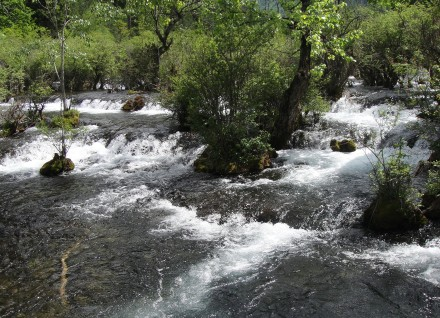 在青山环抱的“Y”字型山沟内,相串相联着大小湖泊118个,瀑布群17个、激流11段、钙化滩流5处,形成中国唯一、世界罕见的以高山湖泊群、钙化滩流为主体的自然景观。水,是九寨沟风景的灵魂,因其清纯洁净、晶莹剔透、色彩丰富,堪称世界水景之王,故有“九寨沟归来不看水”之说。