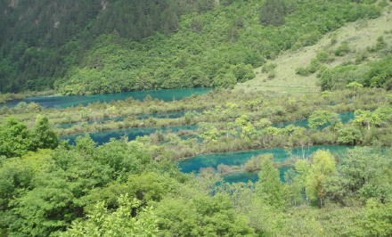 九寨沟是造物主的杰作。山青葱妩媚,水澄清晶莹;山偎水,水绕山,树在水边长,水在林中流,山水相映,林水相亲,景色秀美,环境清幽。九寨沟集水形、水色、水姿、水声于一体,收尽天下水景之美态。九寨沟数十平方公里游览区内,景点之多,景观之美,观光内容之丰富,实属罕见。