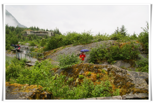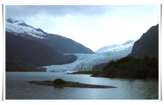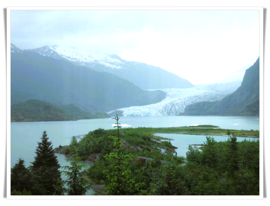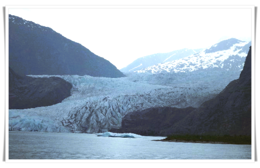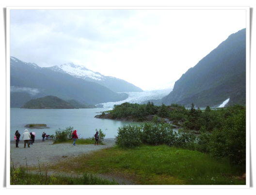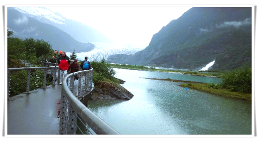 6月3日下午5时邮轮缓缓驶出码头,第二天一整天都在海上航行。第三天中午12时抵达朱诺(Juneau)。朱诺是美国阿拉斯加州的首府,海港城市。1880年因发现金矿兴建,1906年起为州首府。这里离加拿大只有44码,冬天最冷可以达零下二十度,大部分为十几度到三十几度。大家可以根据自己的喜好选择各种各样的游玩项目,如乘直升机看万年冰川,狗拉雪橇,乘游船看鲸鱼,乘巴士游冰川等等,价格从30-50美元至850美元不等。我们选择了冰川游和看鲸鱼,在邮轮上买了每人189美元的套票,结果下船后发现:参加LOCAL团,同样的项目只要140多美元就够了。以后去的朋友假如下船后买票,就可以省下几十美金。