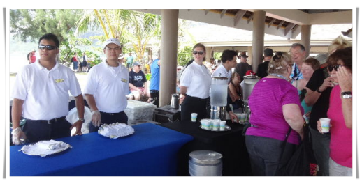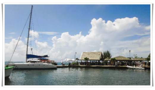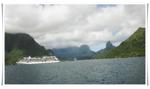 次日上午7:00邮轮就到达了法属波利尼西亚大溪地的第二个岛茉莉雅(Moorea)。此地没有深水港,邮轮不能靠岸,仍然需要使用救生艇当渡轮载大家上岸。在4层Cellar Masters,我们免费领取了每人一张Tender ticket(排下船先后次序的票)。我们是第三组,等了不到10分钟就轮到我们上救生艇。