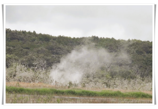 终于见到了活火山,导游说:遇到火山大喷发,就会封山的,那时只有乘直升机才能看见。