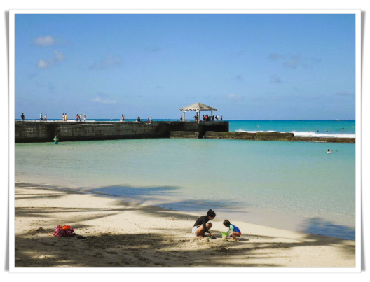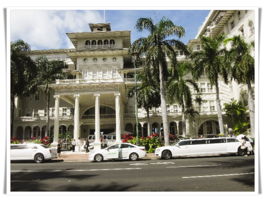 邮轮到达当天,导游把我们接到酒店,协助办好了入住手续,嘱我们付每件行李1美元寄存在酒店,因为正式入住要等到下午3点以后。酒店离著名的威基基海滩走路不到1分钟,我们随即就出去看海滩美景了,同时也在国王大道上到处溜达。在外面吃过午餐,下午2点回到酒店,竟然让我们入住了,还给我们分配了一个可以看到海的房间,可能是我们在这里连续住6晚的缘故吧?!