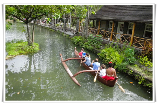 5月9日第3天游波利尼西亚文化村。下午1:20导游来酒店接我们, 3:00到达玻里尼西亚文化村,由他们那里的导游带我们游了汤加、新西兰和萨摩亚三个村,看了他们的表演。5:30去吃自助晚餐。6:00出来,离看大型演出的时间还早,两人又去文化中心的所有村落逛了一圈。这是由七种不同部落组成的民俗文化村。