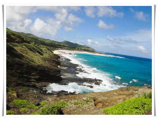 5月10日安排的是环岛精华游。下午1:30出发,途径钻石头火山,观赏海景靓丽的冲浪中心、恐龙湾 ,海泉喷口,大风口风景区等,最后带去夏威夷果加工厂售卖部,5:30回到酒店。我们随即出去威基基海滩看夕阳西下。
