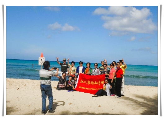 我们沿着威基基海滩漫步,向水族馆走去的路上,遇到了他们,还与他们聊了几句。紫先生曾经也去农村插过队,所以见到他们有一种特别的亲切感。他们每年都会组织几次旅游活动,世界各地到处跑,曾经去过悉尼。自己组团,每次大约20人左右。