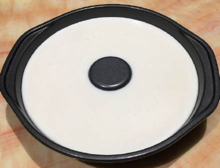 3、两种水煮好后,都必须边倒边过筛,使产品看起来更加细腻美观。假如面上还发现有少量气泡,可以趁热时用牙签戳破消泡。