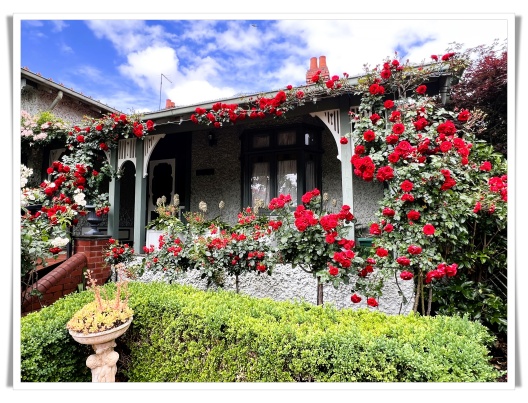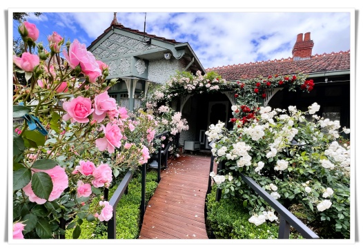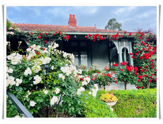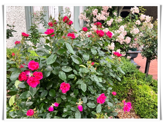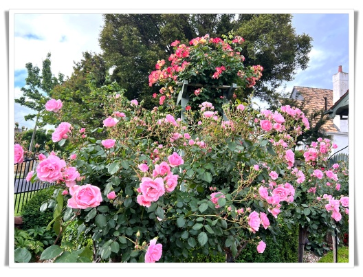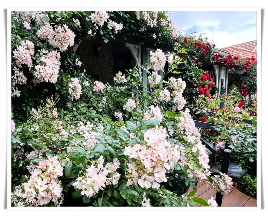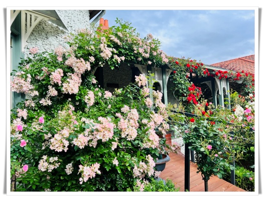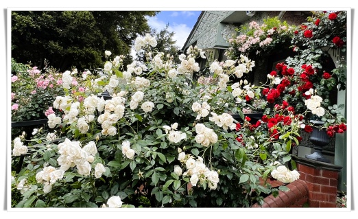 紫薇花园的前后花园,如今正是最绚烂的时节。空气中弥漫着淡淡的香气,粉红的、深红的、大红的、黄色的、还有洁白的玫瑰,在风中轻轻摇曳。