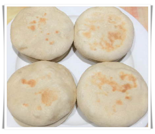 2、将醒好的面团揉光滑,分成8个60克左右的剂子,擀成半厘米厚碗口大的圆饼。然后用煎饼铛或平底锅将馍烙至7成熟,用中火两面都烙上色即可。