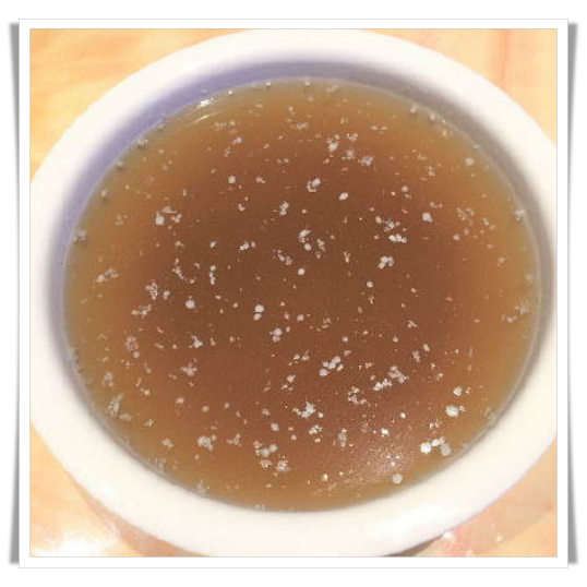 2、羊汤过筛把剩余的碎末去干净,然后放入冰箱冷藏数小时,以便将上面的羊油都去除干净。有人喜欢吃羊油的话,就不需要做这一步。