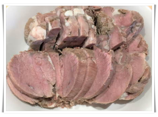 煮好的羊肉可以用干净的纱布包好扎紧,然后放冰箱冷冻格2-3小时,这样羊肉紧致,不但口感好,而且容易切片。但不要放太久,否则就切不动了。