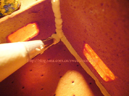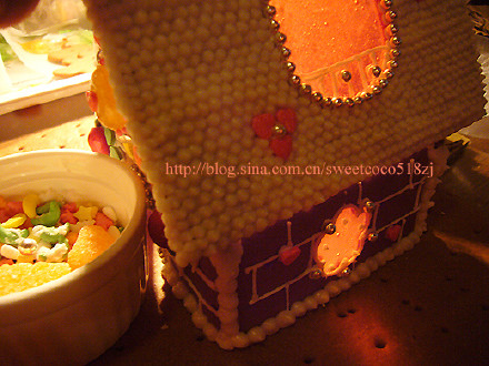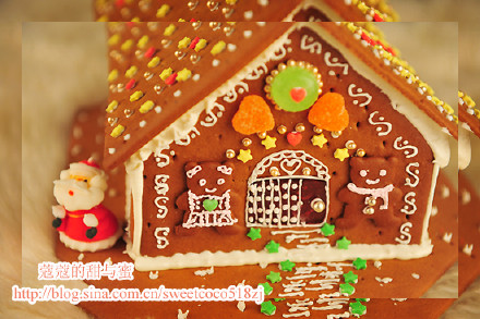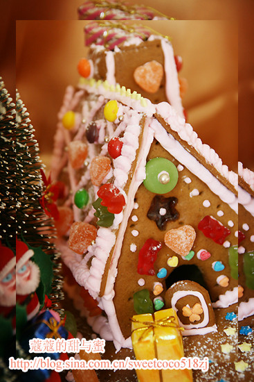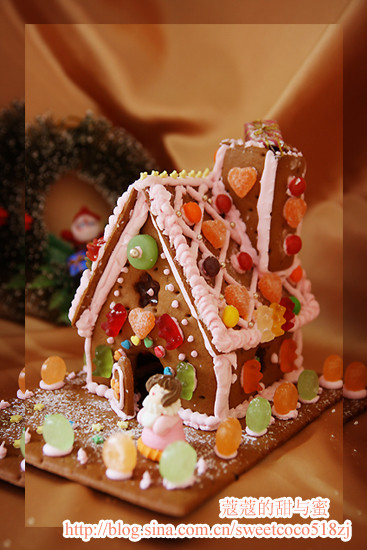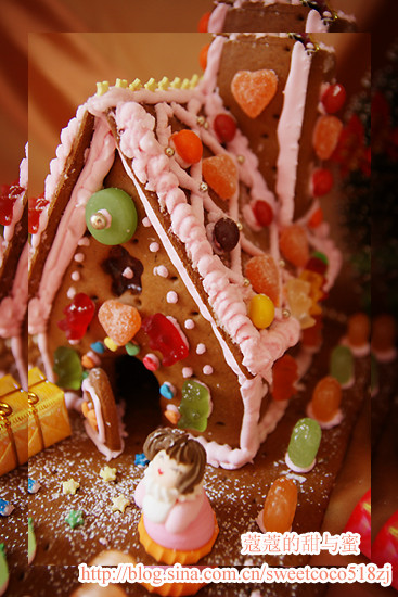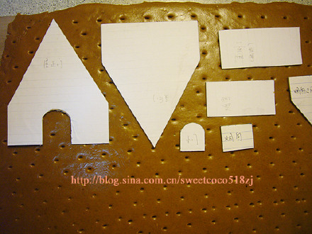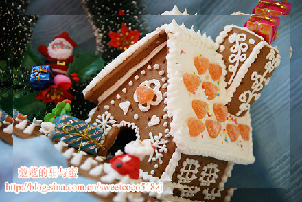 我姜饼屋板材的原料和做法与圣诞趣味装饰饼干相同,篇幅所限就不重复了。自己琢磨出些姜饼屋的装饰方法,在这里记录一下,明年还能接着用。今年一共做了5只姜饼屋,每只都有不同的名字。两周里我的msn名字改成了“埋头盖别墅,进军房地产业”,朋友真以为我一夜暴富。我开玩笑问她说如果你有座自己的别墅,想起什么名字?她说“天呢!”。是啊,现在能有间屋子舒服住着已属不易,谁还敢想别墅啊。