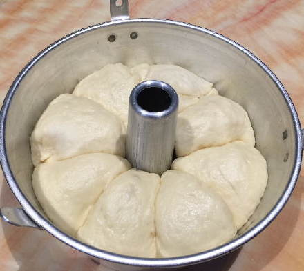 面包机开“揉面团档”45分钟完成后,等待发酵至2倍大。