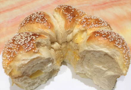 这款美味的凤梨(菠萝)面包, 无需揉面,不必在意普通面包之面团需要的“手套膜”测试。它比馒头更美味,制作更简单。 这款面包带有可见的香甜的菠萝丁,外皮酥脆,内心却像棉花般柔软可拉丝。新鲜出炉的凤梨面包,满屋飘香,是一款色香味俱全的诱人的美食!