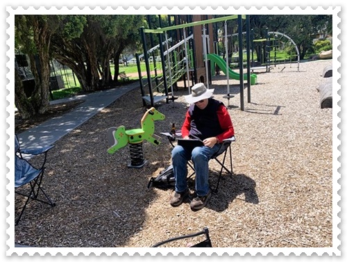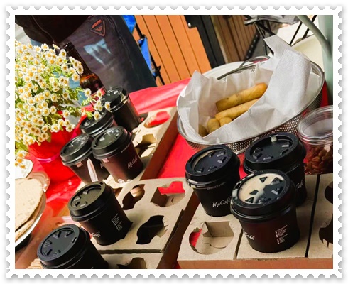 圣诞节那天,我们10点多一点就到达了老宋家后院的那个公园,老宋、王涧、老吴和我俩是最先到达的。Bob带了一张折叠桌子和4张折叠椅子,王涧带了6张折叠椅子,老吴带了一次性桌布、杯盘、擦手纸、垃圾袋等。老王先送儿子去上班,随后带来15杯麦当劳的咖啡和其它美食。