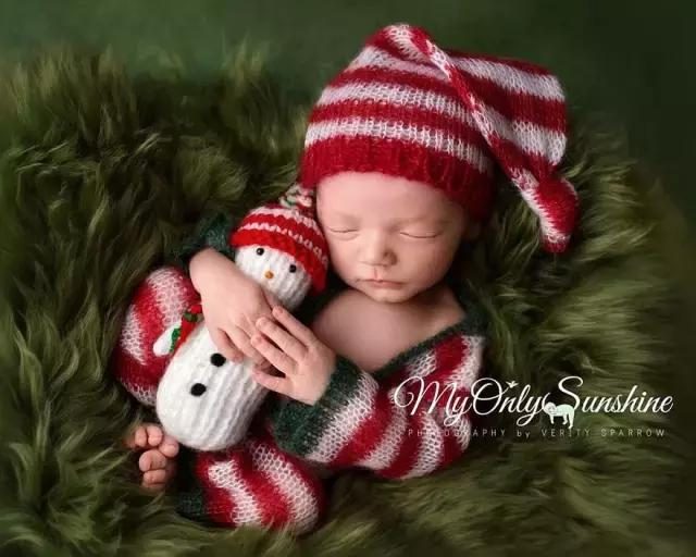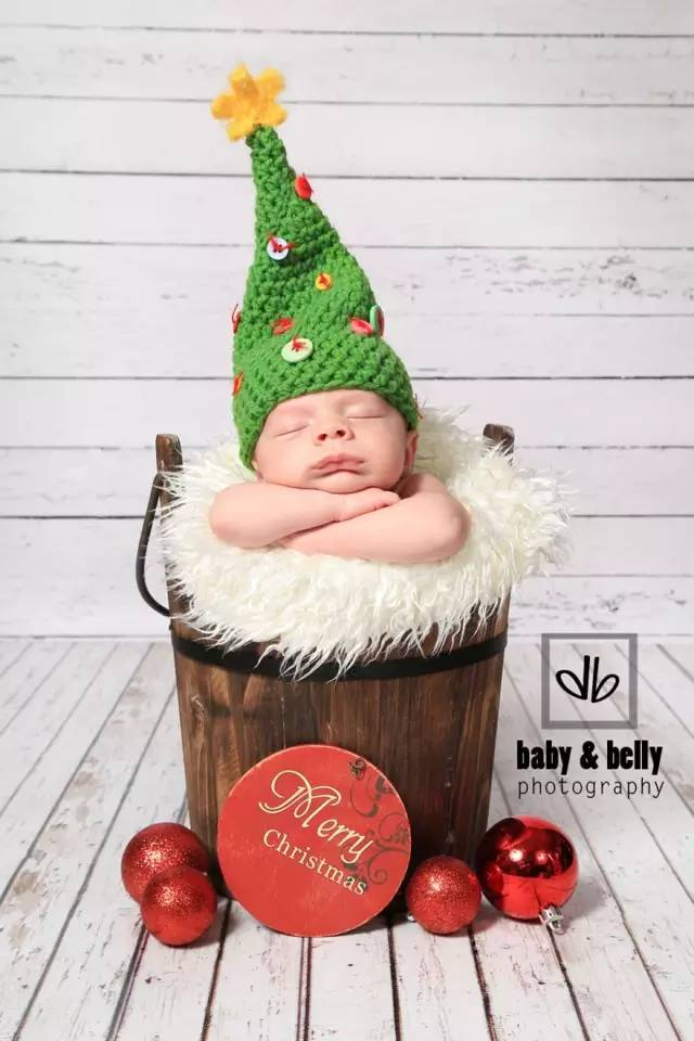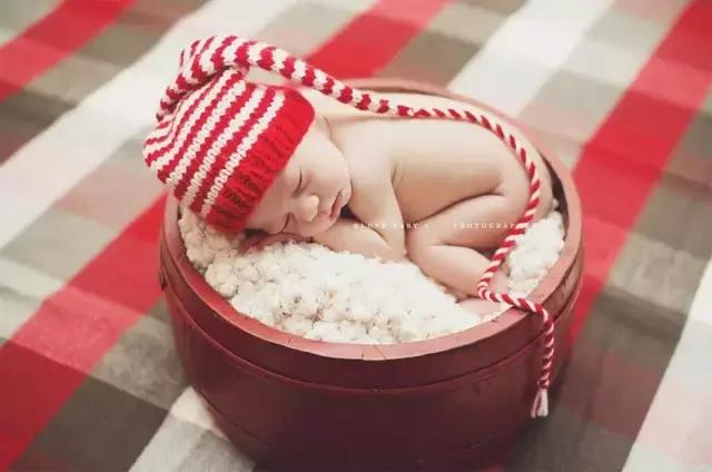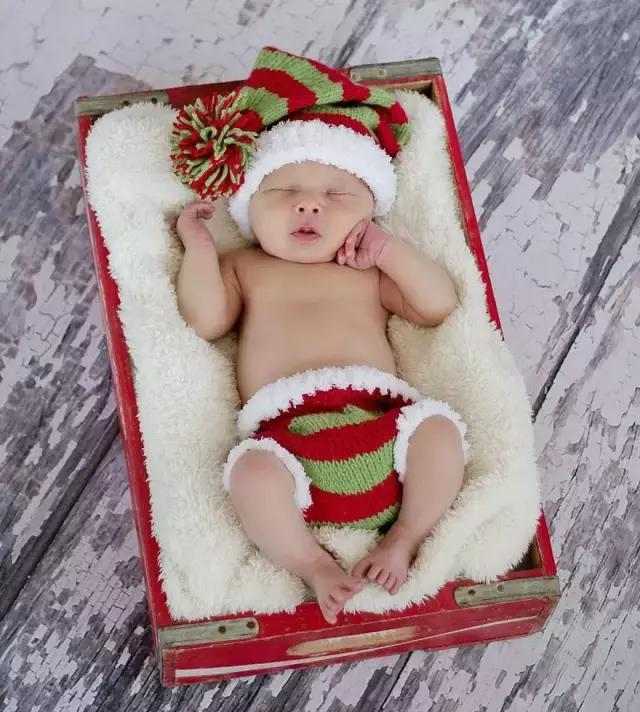刚出生的宝宝,过的第一个圣诞节,只用带上一顶圣诞帽,分分钟就要萌化了。