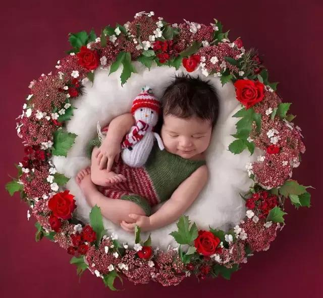 简单的圣诞花环,圈住宝宝,就是一张唯美的照片