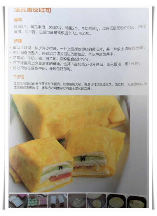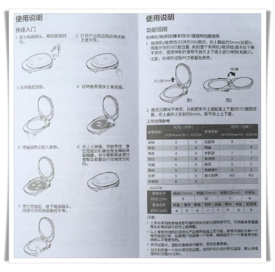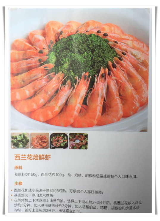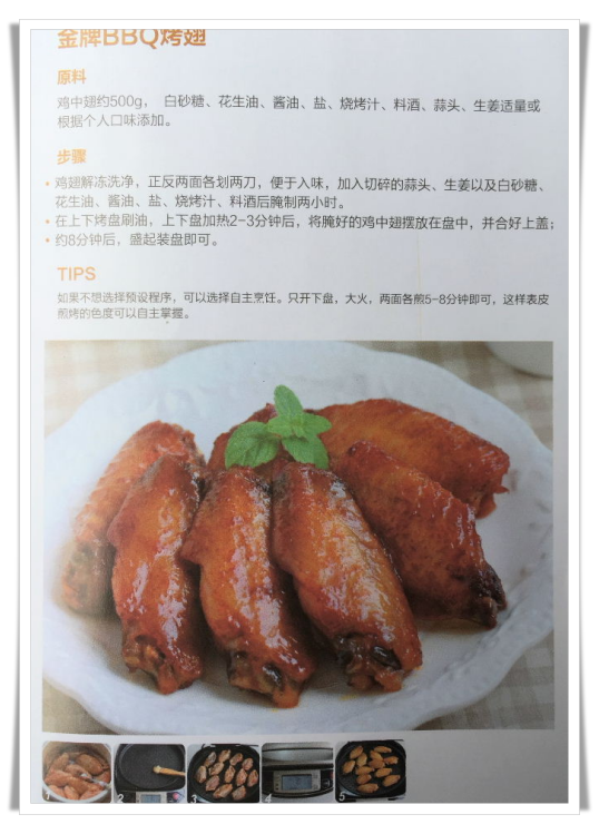 盒子里面附了一份煎烤机食谱,共有10款美食的具体做法。
