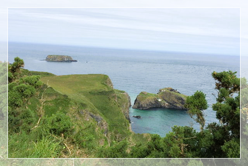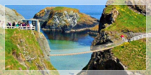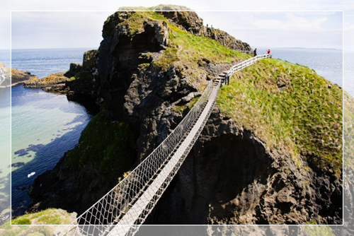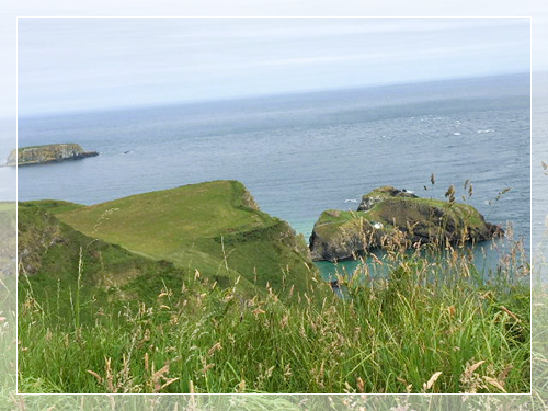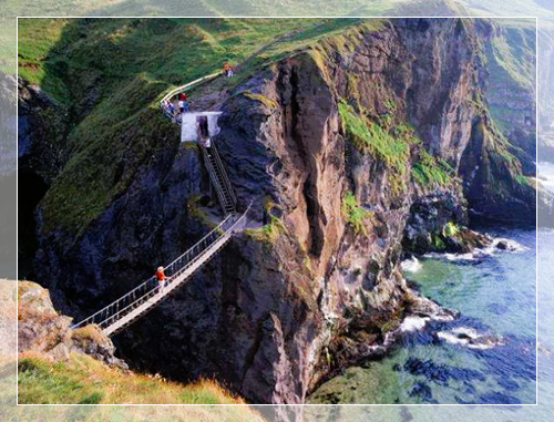 之后我们途经拉里贝恩山(Larrybane),在著名的卡里克空中索桥前面拍照留念。卡里克空中索桥是北爱尔兰排名第二的最具吸引力的景观,索桥悬挂在距海面80英尺的高度,两端连接在陡峭的悬崖上。站在桥上极目望去可以看到壮丽的风景,但出于某种原因,我们这次旅行社没有安排大家去桥上走一走。